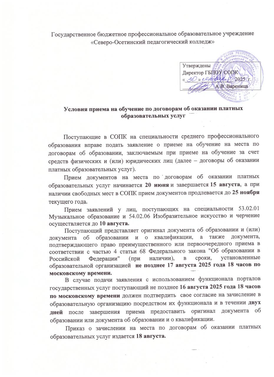 | Приказ об утверждении стоимости платных образовательных услуг на 2025-2026 учебный год в СОПК | Скачать документ |